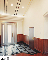福岡空港近くに建つ住宅です。防音対策に配慮し、吹抜を設け、大きな玄関を作りました。